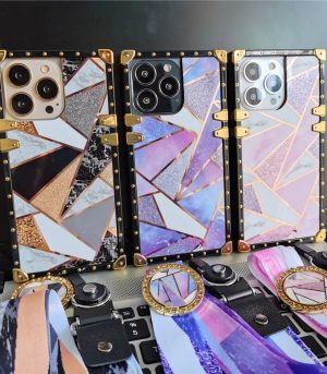 Glitter Geometric Splice Crossbody Square Phone Case